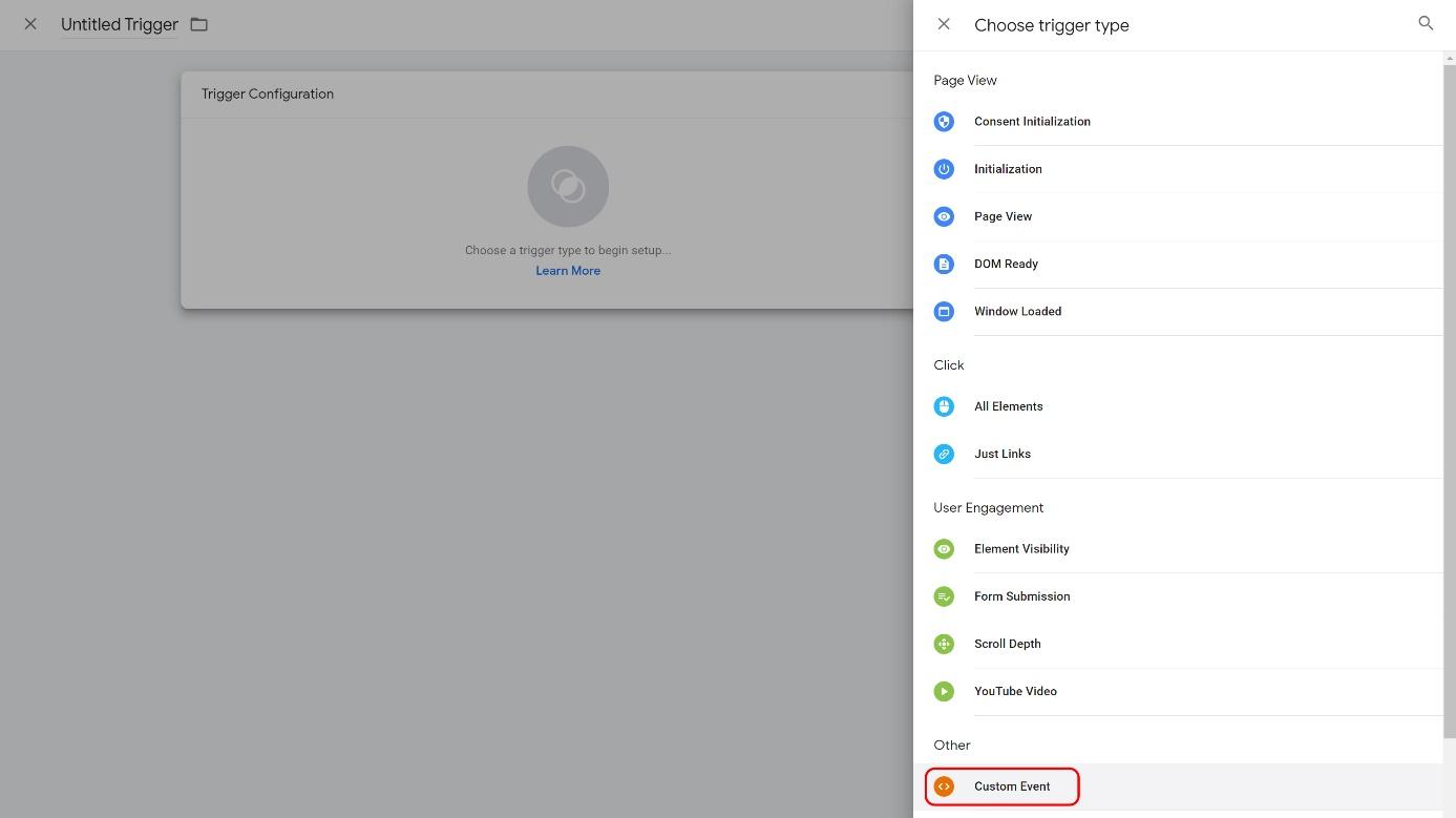 In your GTM account, navigate to Triggers (1) and click New (2) in the top-right corner